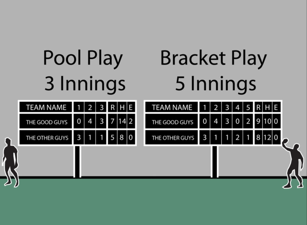 - Pool/Group Play Tie breaker – 1) Head to head 2) Run differential 3) runs scored 4) coin flip